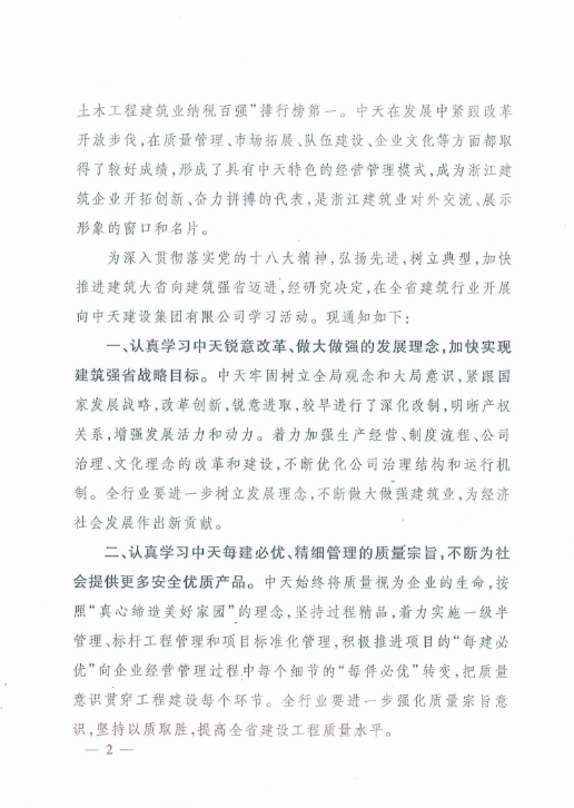 《浙江省住房和城乡建设厅关于在全省建筑行业开展向1277星际电子游戏建设集团有限公司学习活动的通知》